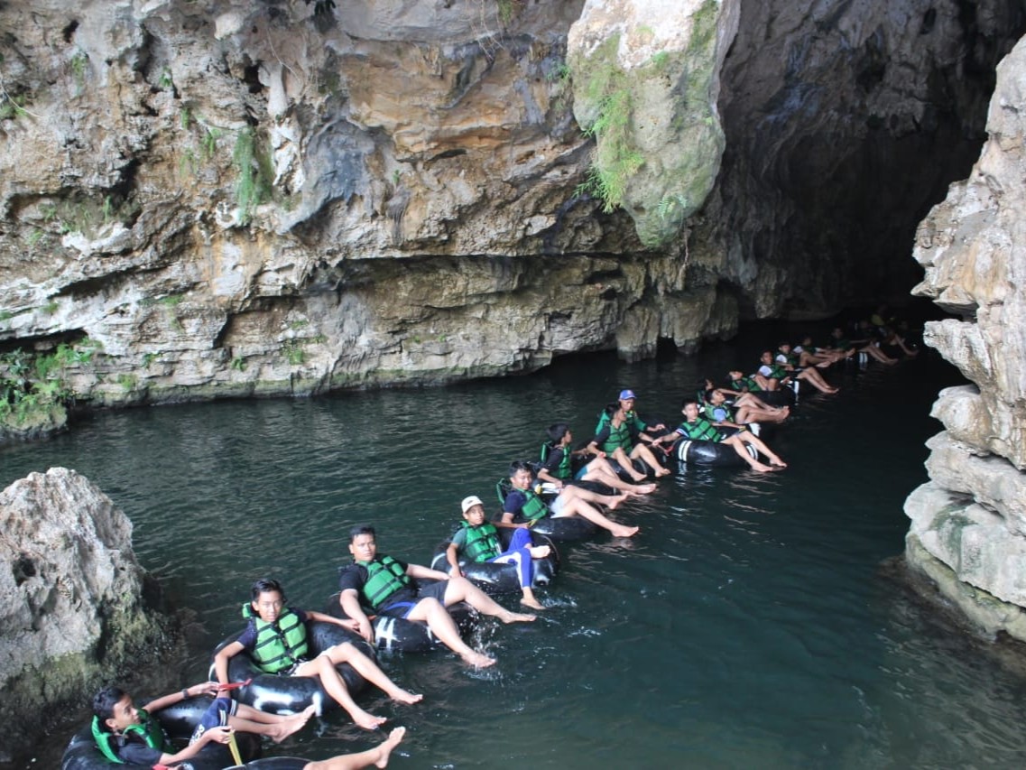 Selain terkenal dengan deretan pantai yang cantik, Gunungkidul juga punya Goa Pindul yang terletak di Desa Bejiharjo, hanya 1 jam dari Kota Jogja. Wisata petualangan ini cocok untuk keluarga karena anak usia 1 tahun pun bisa ikut. Aliran sungainya tenang dan tidak berjeram.